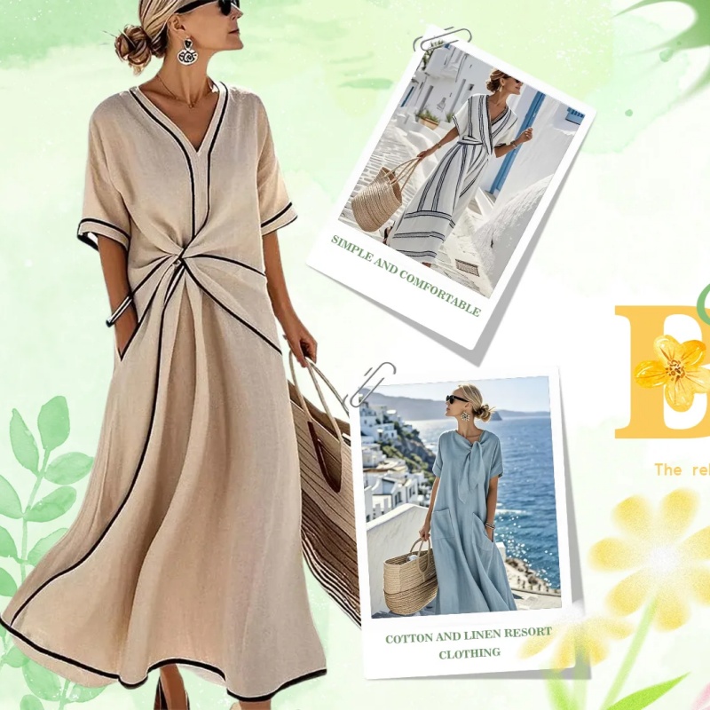 Women's Minimalist Casual Cotton-linen V-neck Set