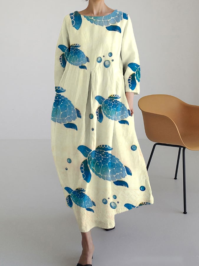 Women's Artistic Turtle Pattern Print Flowy Dress