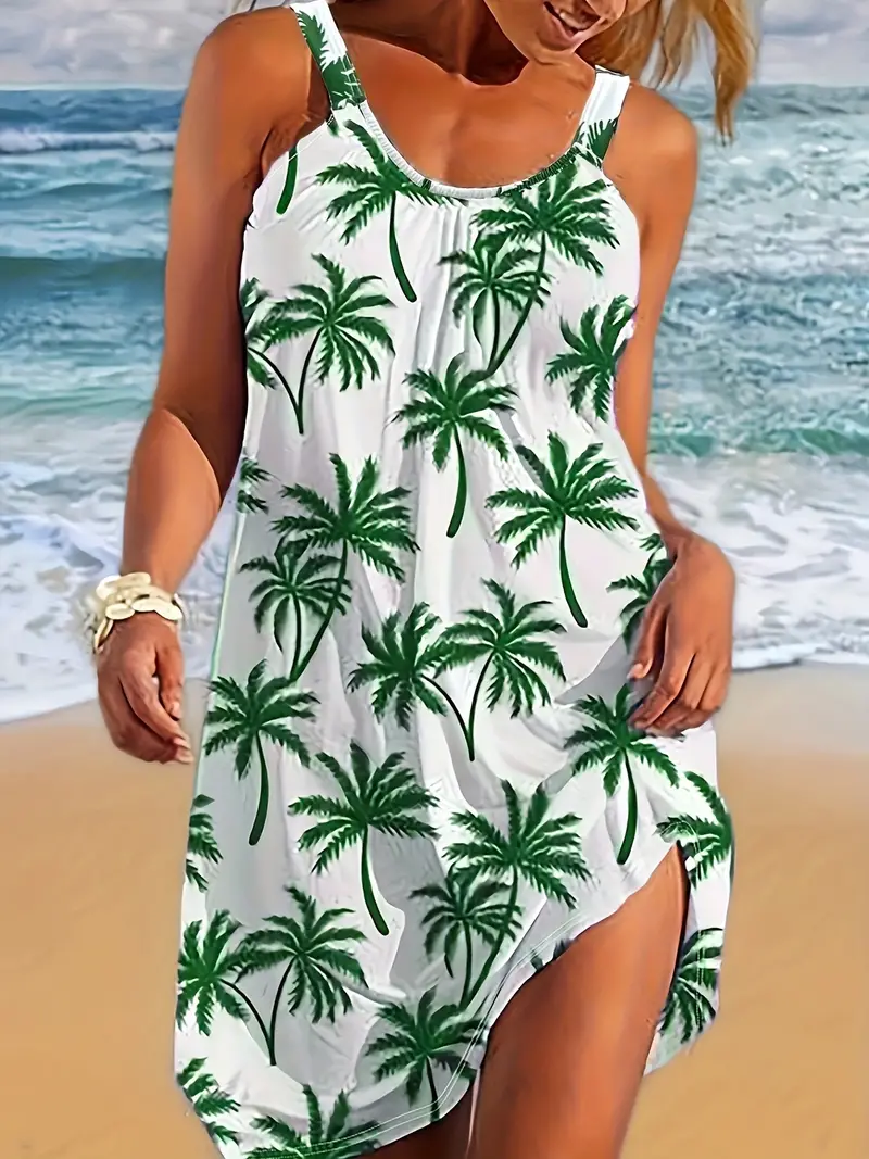 Plus Size Coconut Tree Print Cami Dress