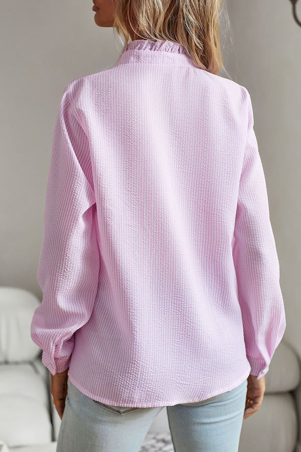 Button Stringy Selvedge Long Sleeve Casual Tops