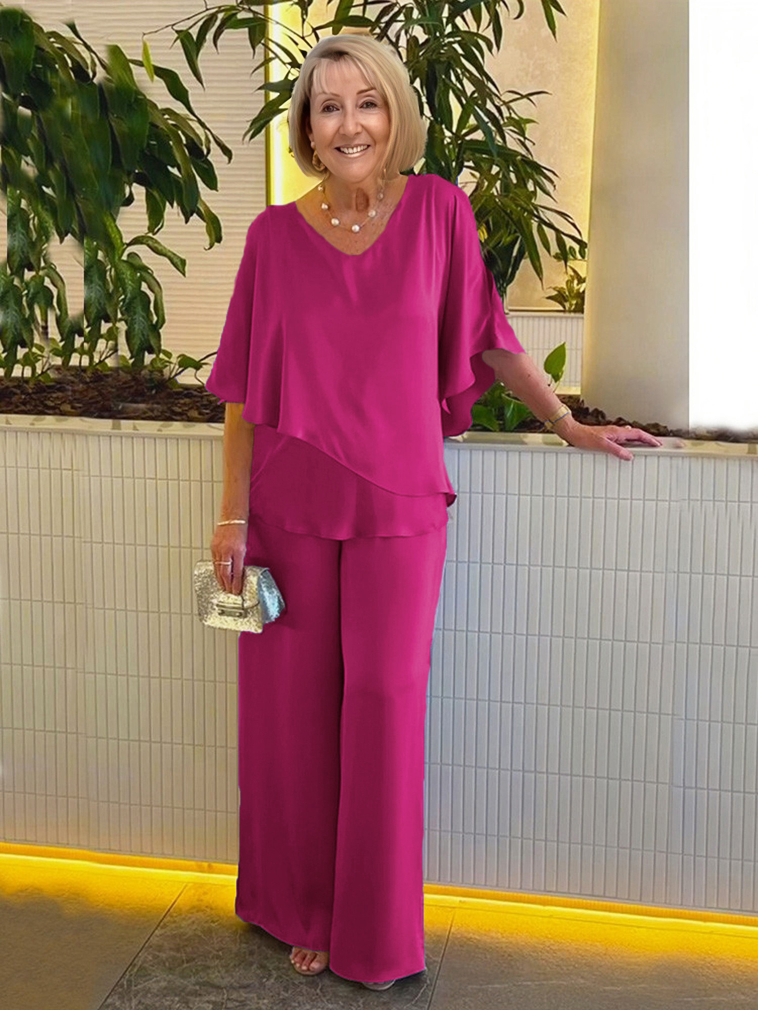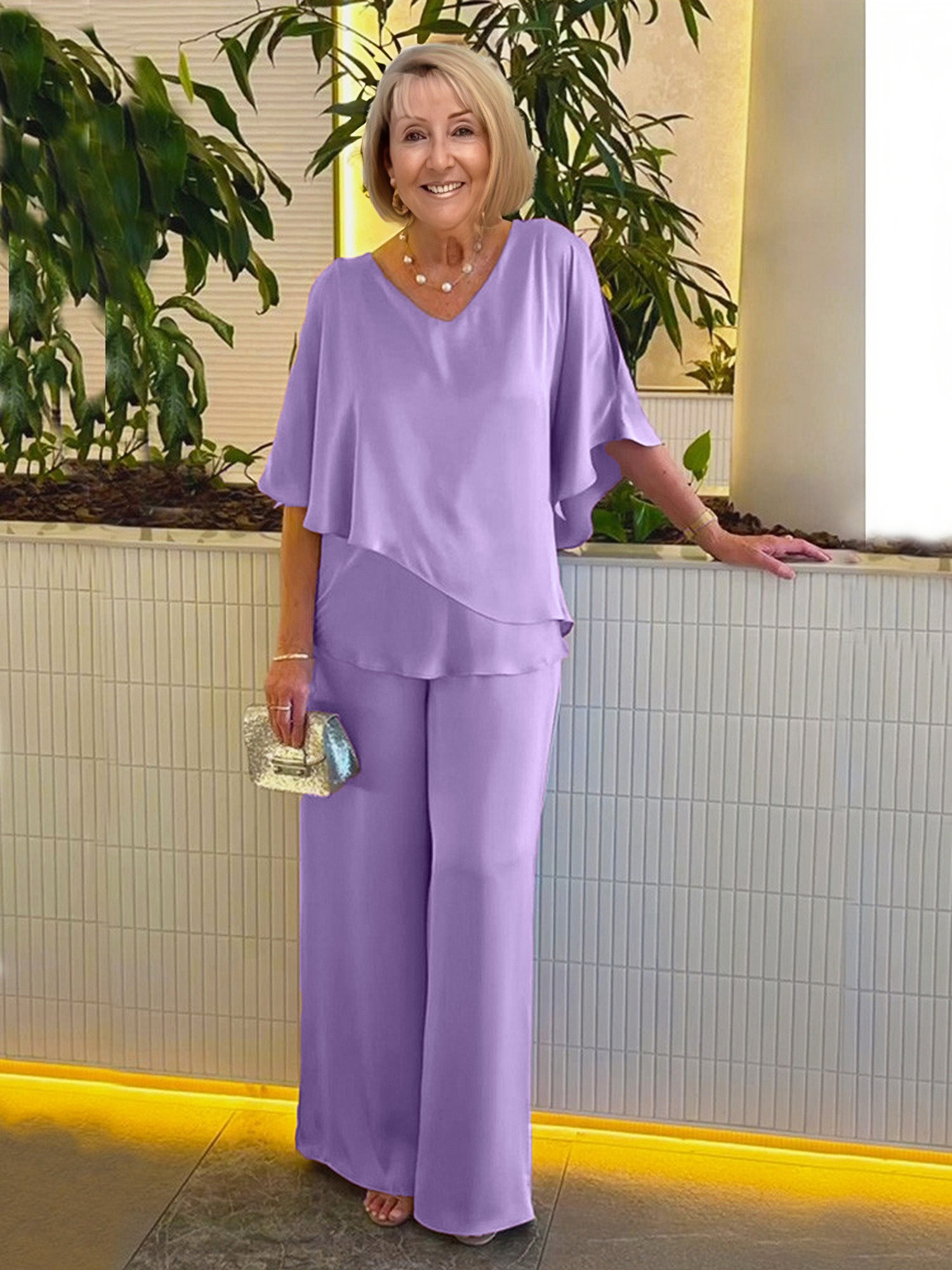 Type: double layer Top Wide Leg Pants Two Piece Set