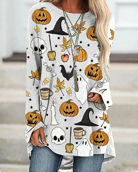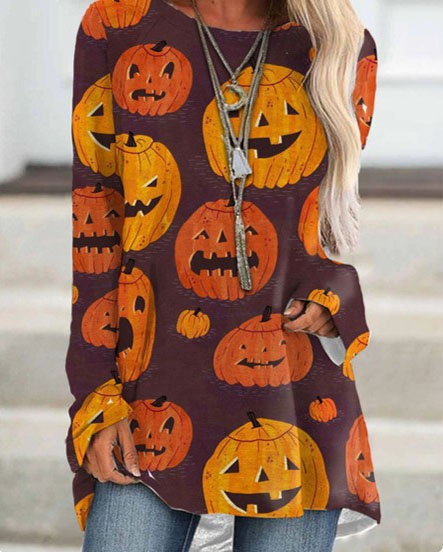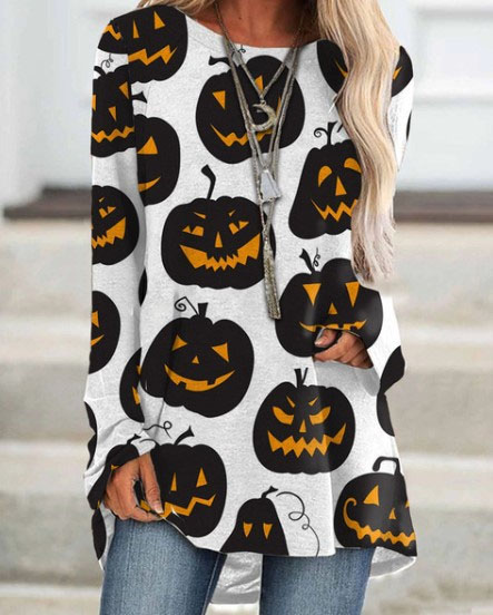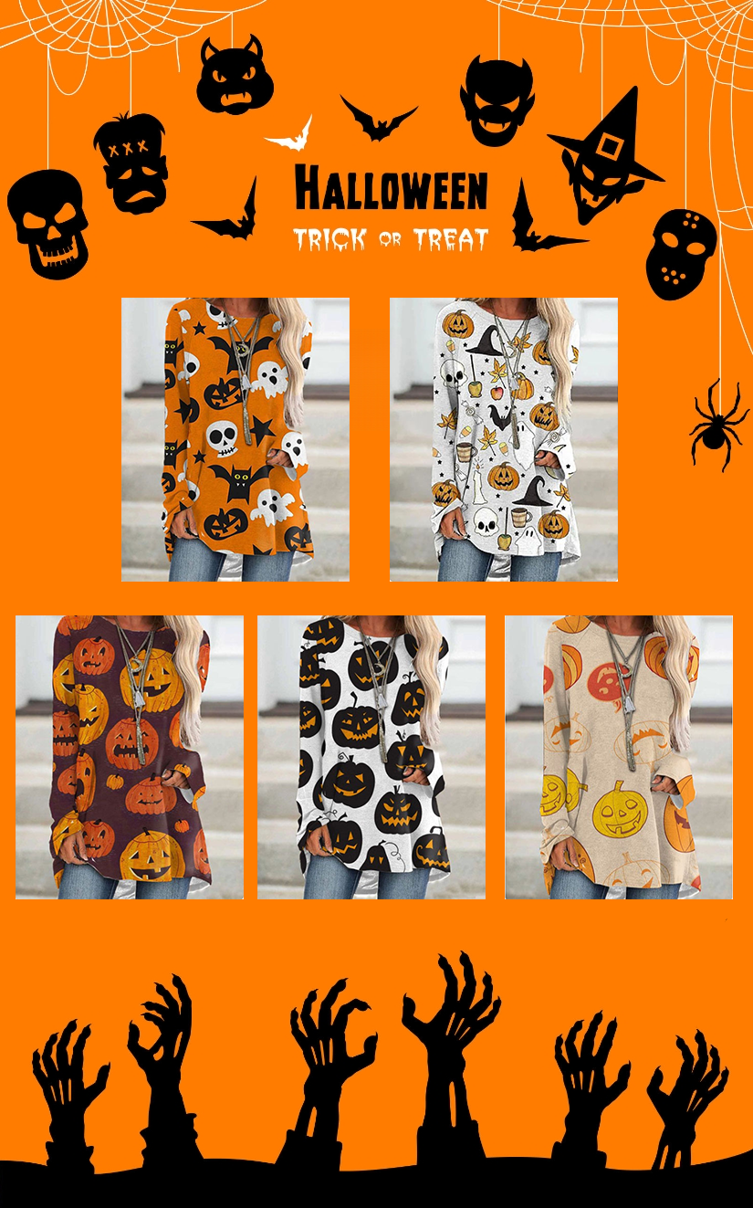 Designed for the ultimate Halloween vibe, this long-sleeve shirt features a playful 3D-printed pumpkin pattern that pops with personality, making it the perfect pick for parties, trick-or-treating, or adding a spooky-cute touch to your fall wardrobe.