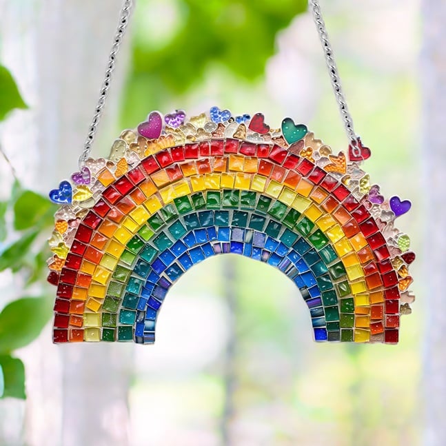 This beautiful rainbow mosaic hanging is more than just décor—it's a reminder to celebrate love, hope, and unity.