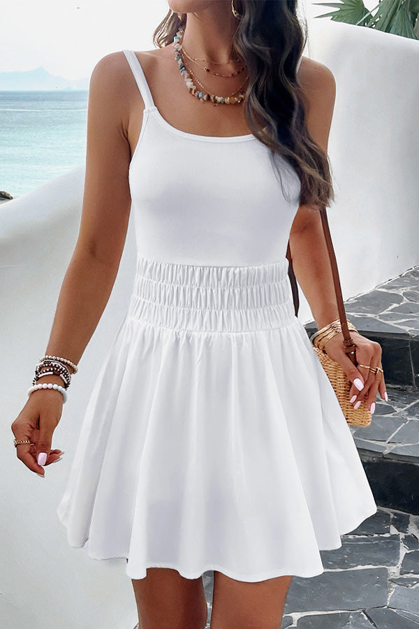 Solid Smocked Sleeveless Mini Dress